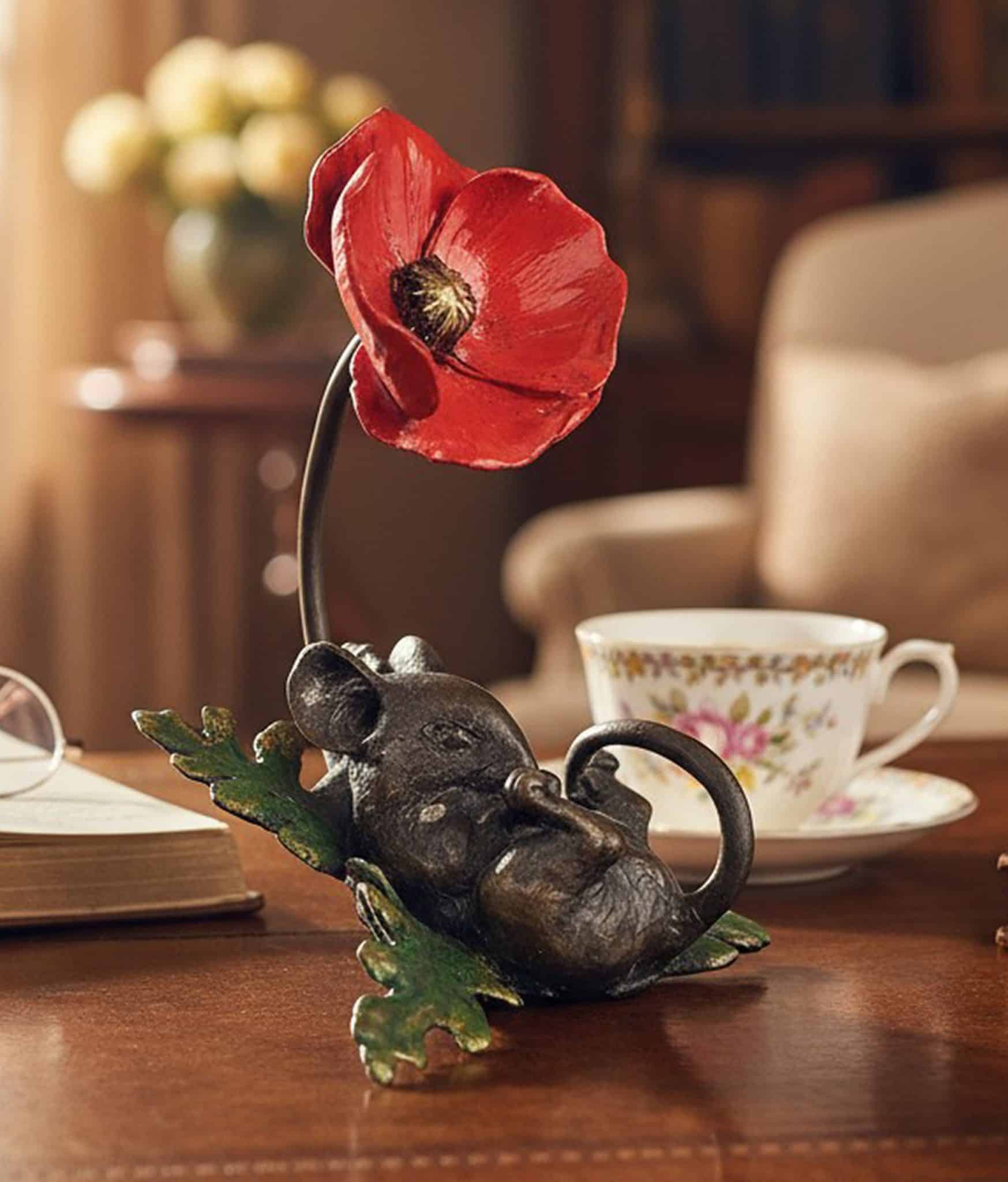 This exquisite Limited Edition Bronze “Mouse Asleep with Poppy” Sculpture captures a moment of peaceful charm and natural beauty.